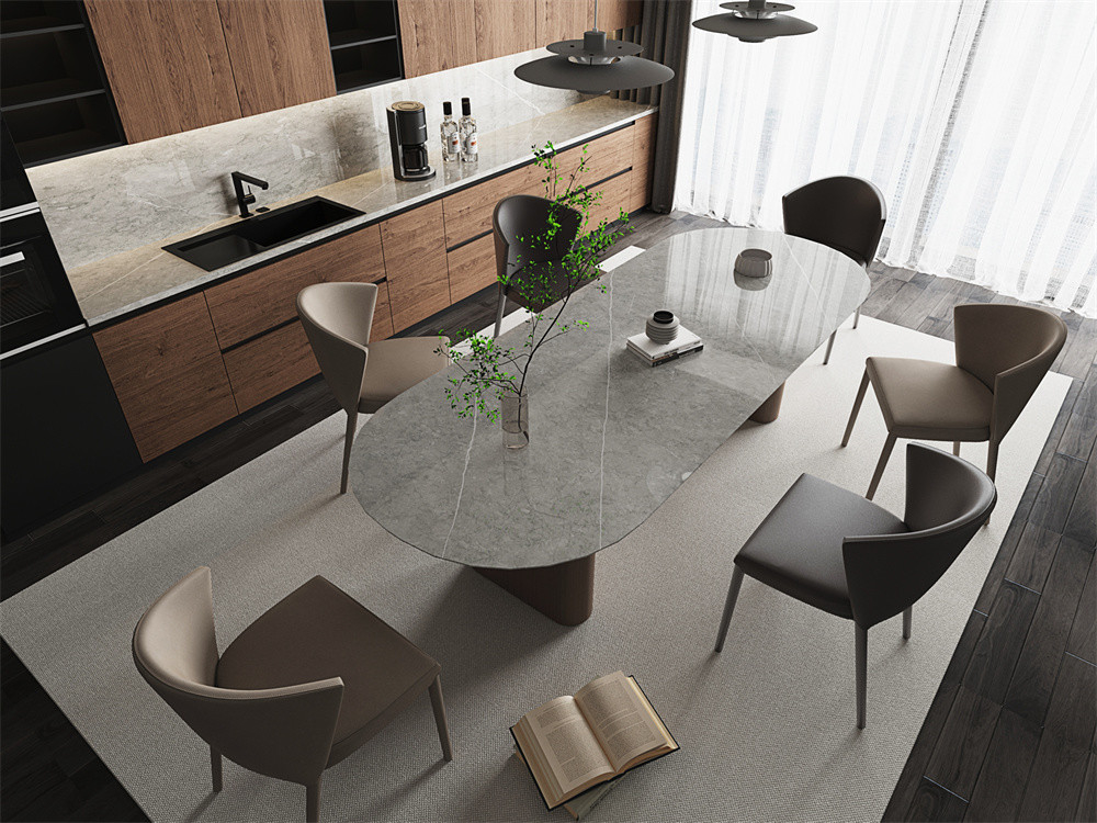 Transformeer uw kantoor met de elegante aantrekkingskracht van lichtgrijze gepolijste gesinterde stenen platen als uw bureauoppervlak.minimalistische esthetiek.Gepolijste gesinterde stenen platen zorgen voor een reflecterend oppervlak dat de kamer zacht verlicht, waardoor een uitnodigende omgeving ontstaat voor werk of studie.De duurzame en makkelijk te reinigen eigenschappen zorgen ervoor dat uw bureau na verloop van tijd ongerept en functioneel blijft, het bevorderen van zowel efficiëntie als stijl.