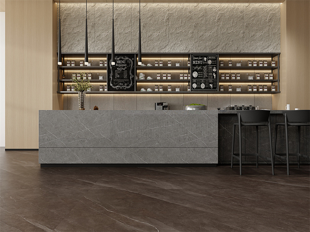 Het glanzende oppervlak van de gepolijste gesinterde stenen platen voegt niet alleen een laag verfijning toe, maar biedt ook de praktische voordelen van duurzaamheid en lage onderhoudsvereisten.Dit zorgt ervoor dat uw televisiemuur als middelpunt opvalt dat zowel stijl als tijdloosheid uitstraaltHet middengrijze en de gladde textuur van gesinterde stenen platen vormen samen een samenhangende achtergrond, waardoor het een ideale aanvulling is op een breed scala aan interieurontwerpstijlen.