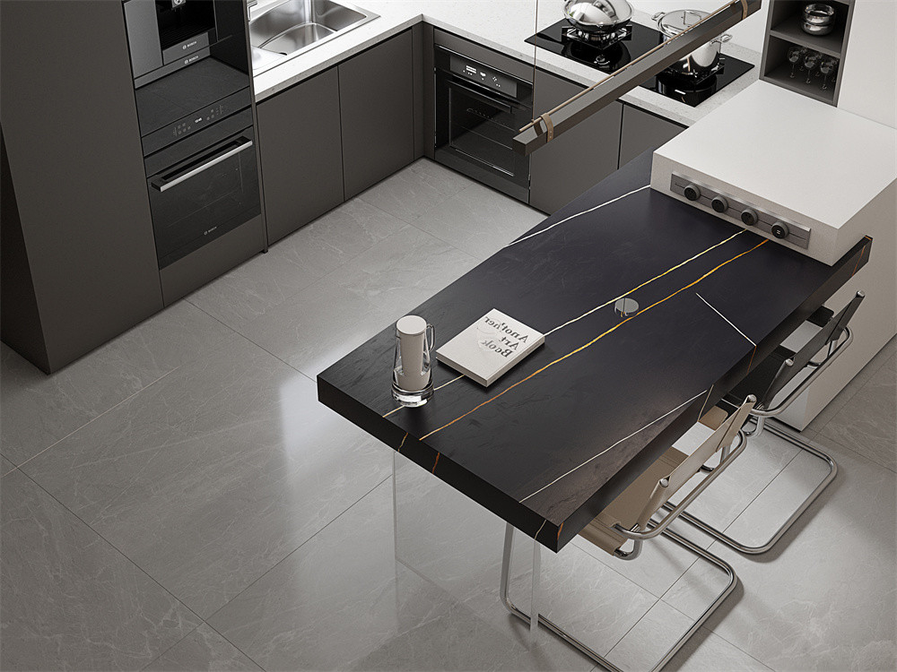 Stel dat u de hele dag hard hebt gewerkt, en wanneer u thuis komt en de deur van de badkamer opent, zult u merken dat de vloer en de achterwand van de badkamer van prachtige gesinterde stenen platen zijn gemaakt.De eenvoudige textuur van de matte gesinterde stenen plaat en de zwarte kleur geven de badkamer een luxe sfeerWanneer u uw haar wast, zult u merken dat uw gemoedstoestand gelukkig wordt omdat u stress kunt loslaten en uw problemen kunt vergeten in de goede omgeving gecreëerd door de duurzame gesinterde stenen plaat.Het is de moeite waard om te vermelden dat het versieren van de badkamer met grote platen kan genieten van een mooi leven.