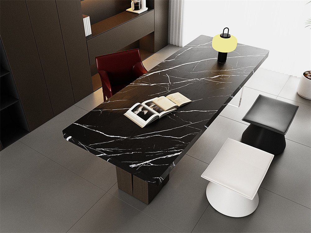 Verander je salontafel met matte gesinterde stenen platen.Dit kwalitatief hoogwaardige materiaal is een mix van de esthetische charme van natuursteen met de duurzaamheid en het makkelijke onderhoud van zwarte gesinterde stenen platenHet is een populaire mening dat niet-glijdende gesinterde stenen platen een ideale keuze zijn voor een oppervlak dat zowel modieus als praktisch is.Ze zijn perfect om een vleugje moderne verfijning toe te voegen aan je woonkamer..