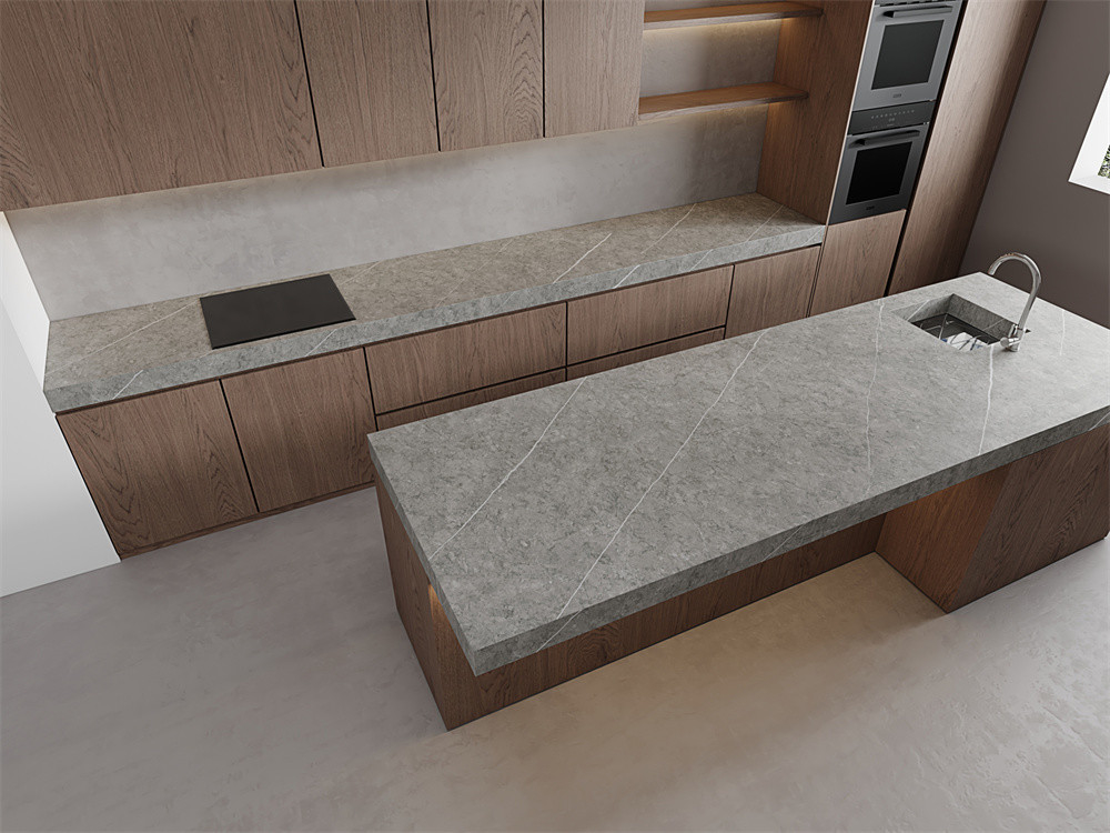 Revitaliseer je hotel met grijsgesinterd steenDeze platen combineren robuustheid met een verfijnde esthetiek.gesinterd steenPlaten bieden een genuanceerde textuur die in harmonie is met de rustige sfeer van uw ruimte, de sfeer verhoogt en dagelijkse slijtage weerstaat.een opwindende omgeving creëert waar sereniteit en hedendaags design samenkomen, zodat elke sessie een revitaliserende retraite is.
