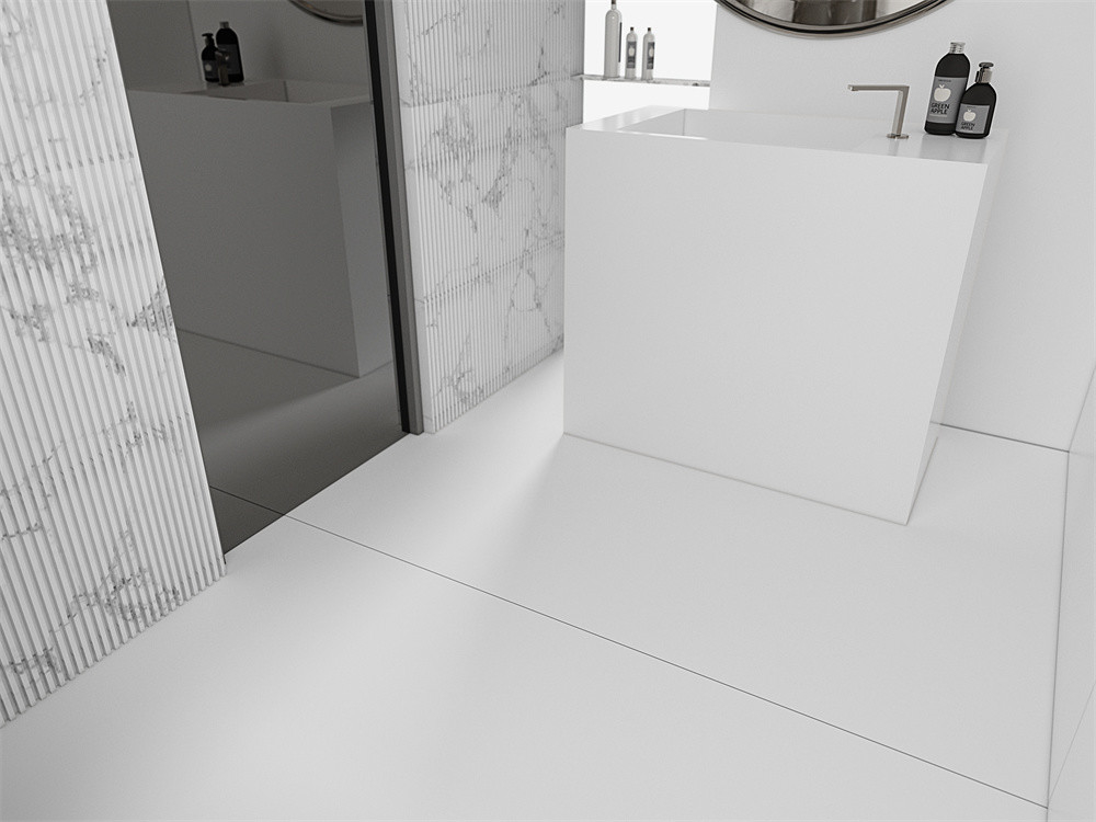 Verfraai uw badkamer met matte gesinterde steenplaten. Deze grote platen bieden een stijlvol en chique oppervlak, geschikt voor de strenge eisen van een natte omgeving.Slijtvaste gesinterde steenplaten bieden een subtiele maar luxueuze uitstraling die zowel moderne als traditionele decoratiestijlen kan aanvullen. Of u nu een serene spa-achtige retraite of een gedurfde statement-kamer wilt creëren, deze duurzame gesinterde steenplaten bieden eindeloze mogelijkheden. Ze kunnen worden gebruikt op muren, vloeren, wastafelbladen en zelfs douchegebieden, en naadloos worden geïntegreerd in elke hoek van uw badkamer.
